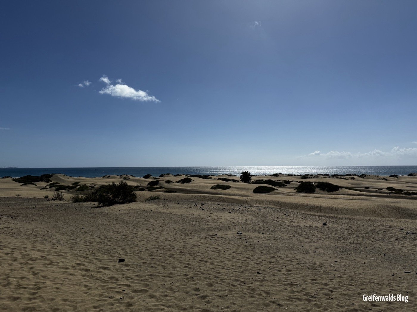 Die Lage in den Dünen und damit vor Playa del Inglés hat Vor- und Nachteile. Vorteil ist natürlich die Aussicht und die Möglichkeit, von der Hotelanlage direkt in die Dünen und zum Strand gehen zu können. Das haben wir auch hinlänglich genutzt, so waren wir z.B. jeden Morgen vor dem Frühstück im Atlantik schwimmen! Nachteil (im Verhältnis zu unseren Hotels zuvor) ist die Lage in Bezug auf die Örtlichkeit innerhalb Maspalomas. Playa del Inglés ist natürlich nicht mit Meloneras und der schönen Strandpromenade dort zu vergleichen. Das wusste wir jedoch und hatten es in Kauf genommen – denn wie so oft gibt es kein pareto-optimal, bei dem ALLES passt.